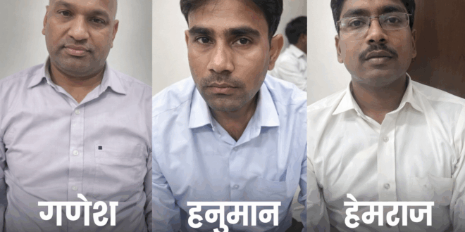 राजस्थान के भीलवाड़ा जिले में भ्रष्टाचार निरोधक ब्यूरो (ACB) ने बड़ी कार्रवाई करते हुए तहसीलदार सहित तीन लोगों को रिश्वत लेते हुए गिरफ्तार किया है। यह कार्रवाई आसींद क्षेत्र की अंटाली तहसील में की गई।