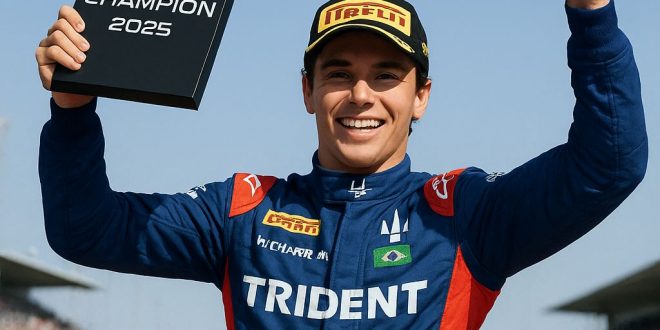 राफेल कैमारा ने 2025 एफआईए फॉर्मूला-3 ड्राइवर्स चैंपियनशिप का खिताब अपने नाम कर लिया है। यह इस सीजन उनकी चौथी जीत रही। ट्राइडेंट टीम के इस होनहार ड्राइवर ने पोल पोजिशन हासिल करने के बाद शुरू से लेकर अंत तक रेस में अपनी पकड़ मजबूत बनाए रखी और शानदार अंदाज़ में जीत दर्ज की।